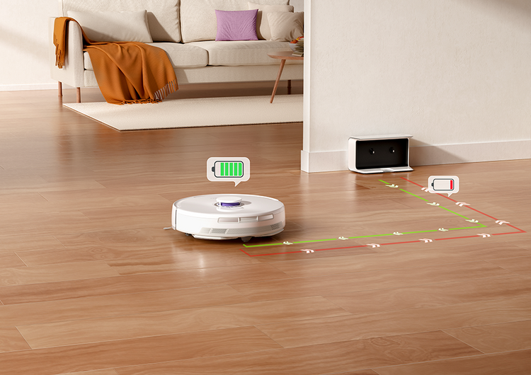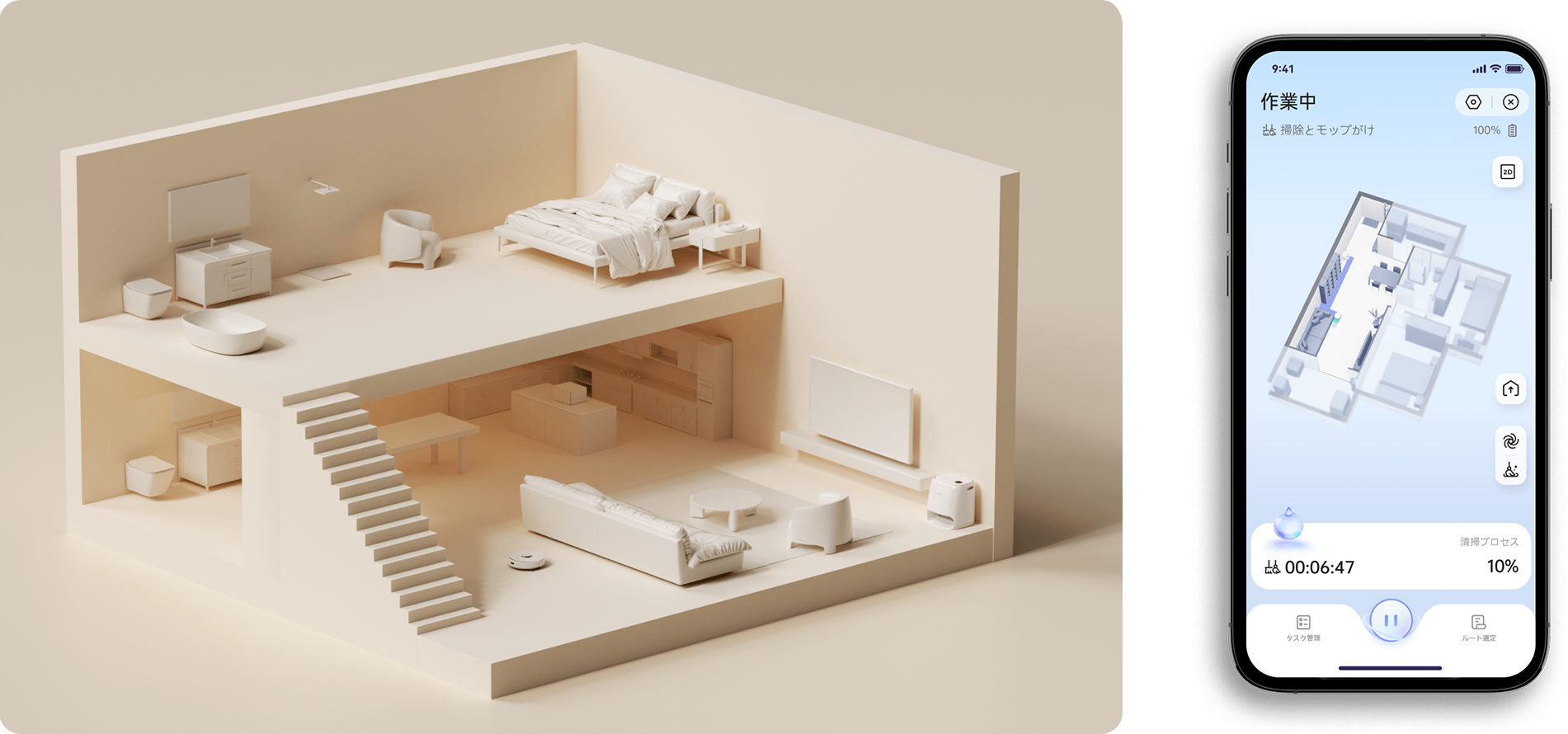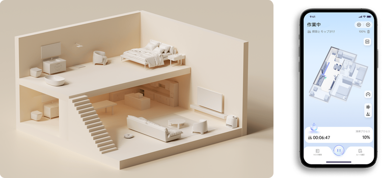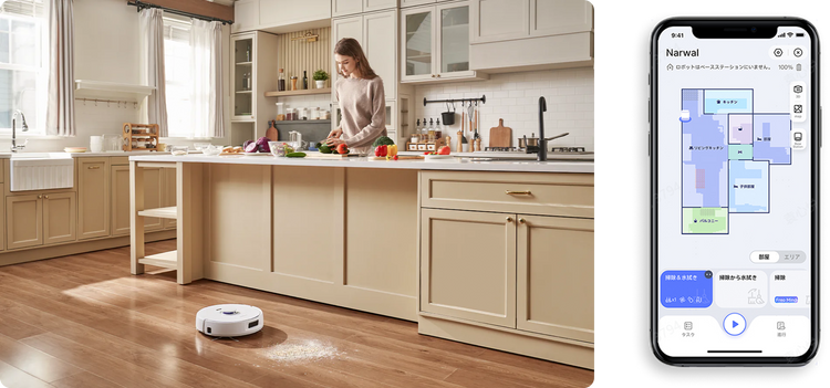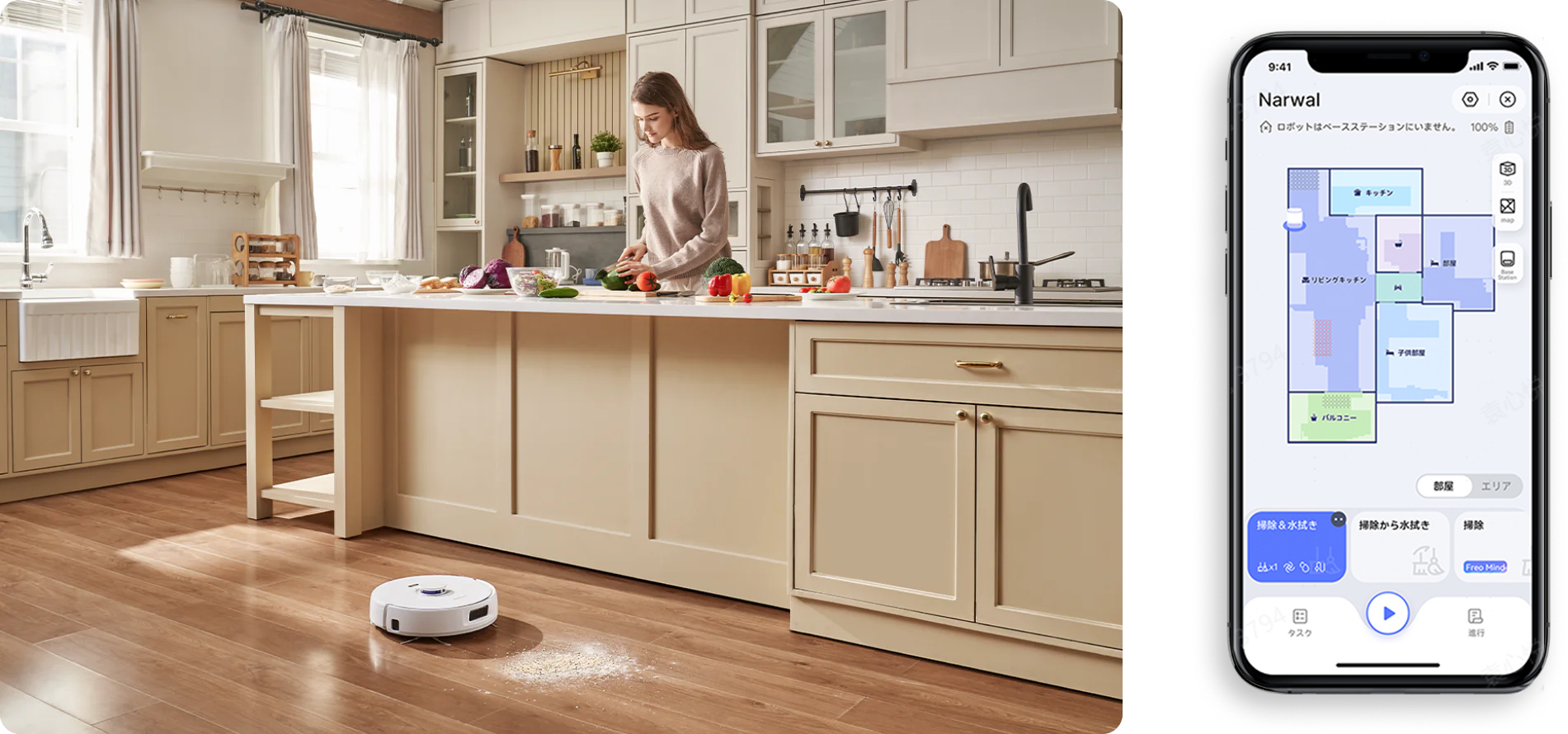 3Dマッピングを通じて部屋と床のタイプを認識し、最適な清掃を実施。